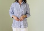 Crisp and modern, this blue striped shirt for women features a tailored silhouette and contrast pocket—perfect for workwear, layering, and everyday polish.