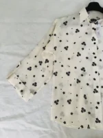 Discover soft elegance in the Floral Breeze Button-Down Shirt from Ara Designs — the perfect blend of relaxed charm and everyday sophistication. This floral shirt for women features a cream-toned base, artfully scattered with black floral motifs that add just the right amount of personality without overwhelming the look.