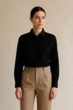 Meet The Black Essential—a classic cotton shirt made for women who value effortless style. Cut from breathable cotton, it offers a flattering silhouette with full sleeves, a crisp collar, and button-down closure. Whether you’re heading to work, a casual lunch, or dressing up with accessories, this versatile piece fits every setting.