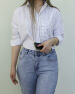 White and Blue Striped Shirt for Women