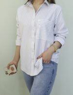 Made from soft, breathable fabric, it ensures comfort from morning to night. The crisp white base instantly brightens your outfit, while the vertical stripes create a flattering, lengthening effect. As a result, it suits a wide range of body types.